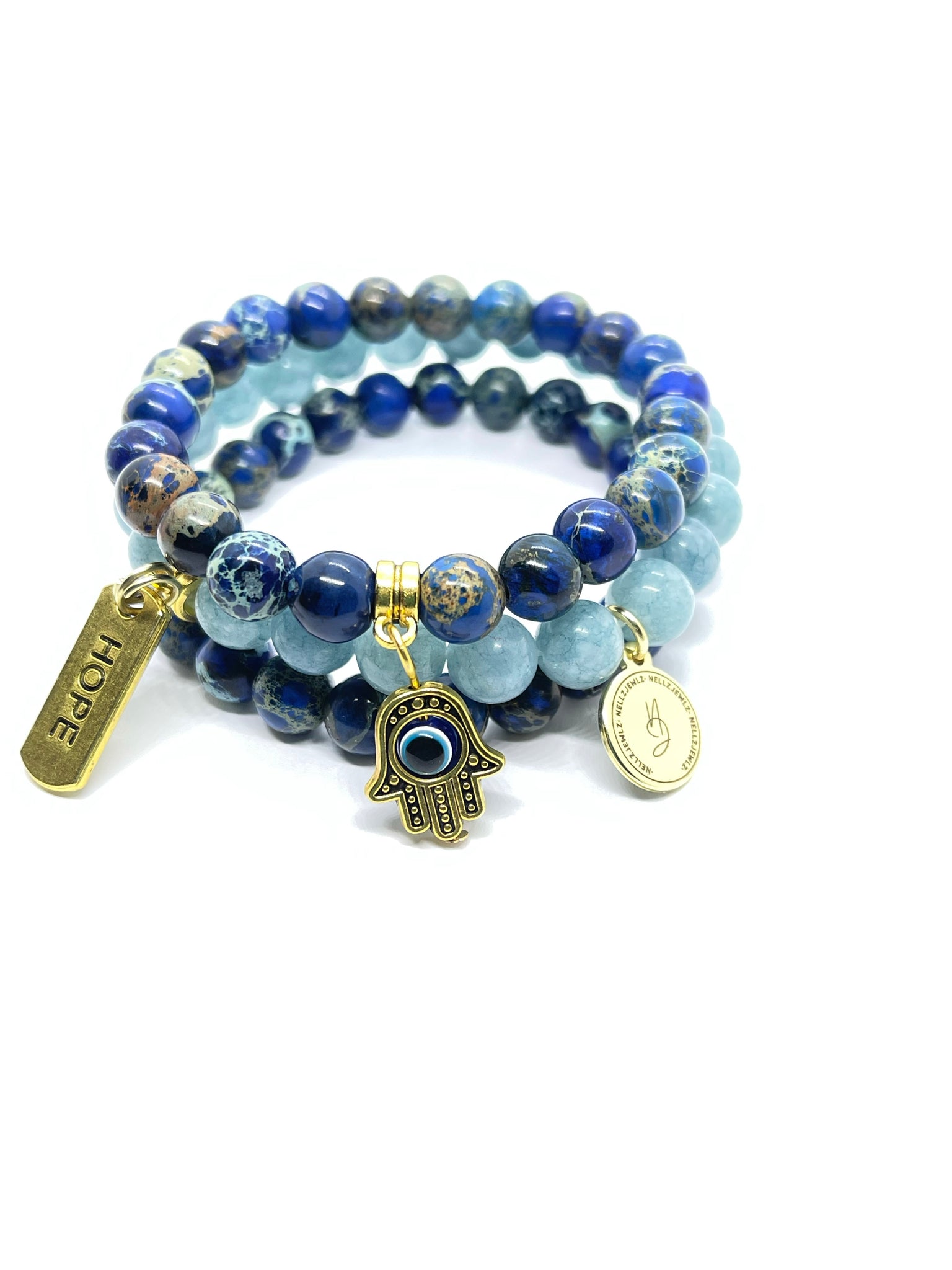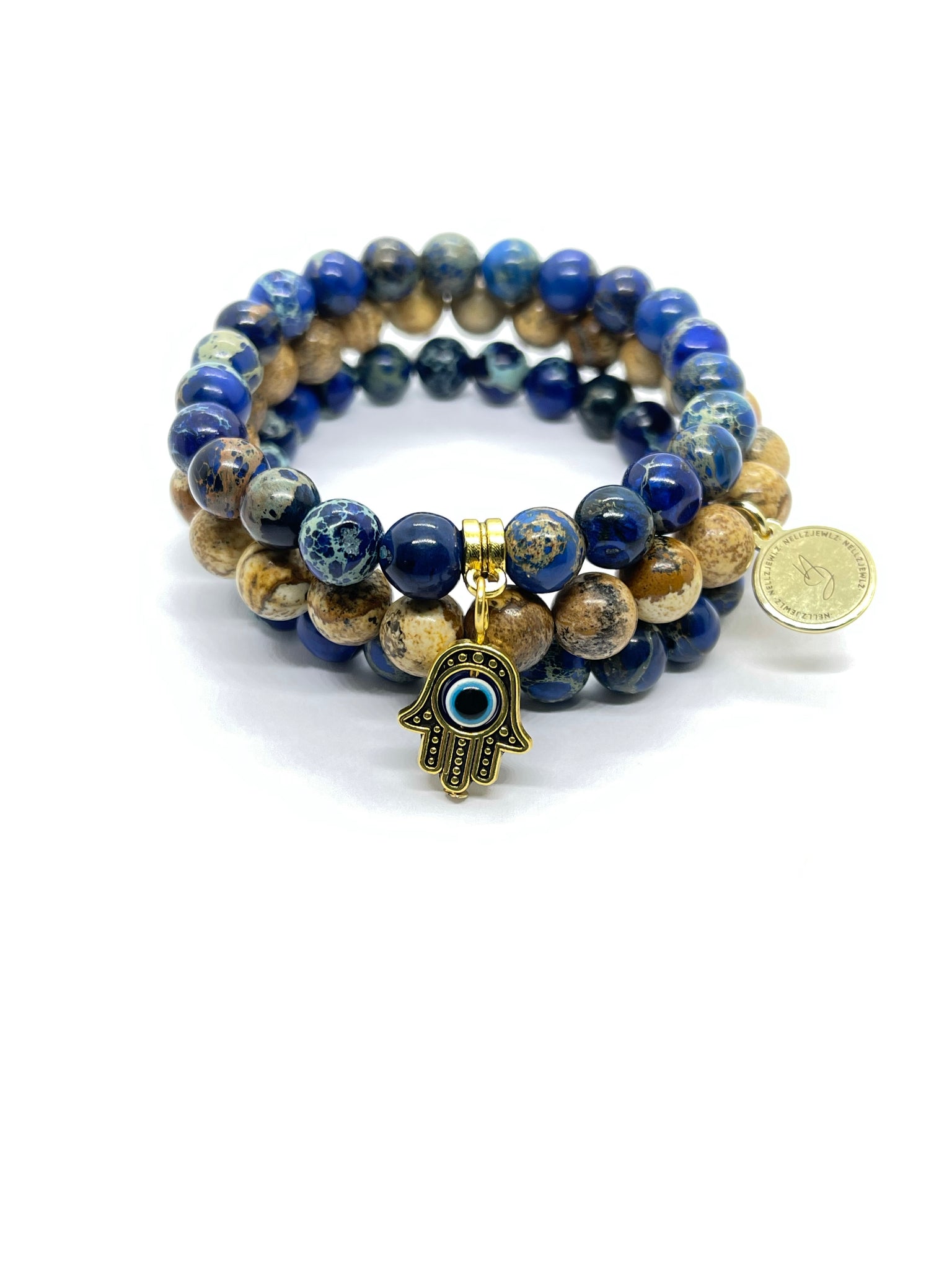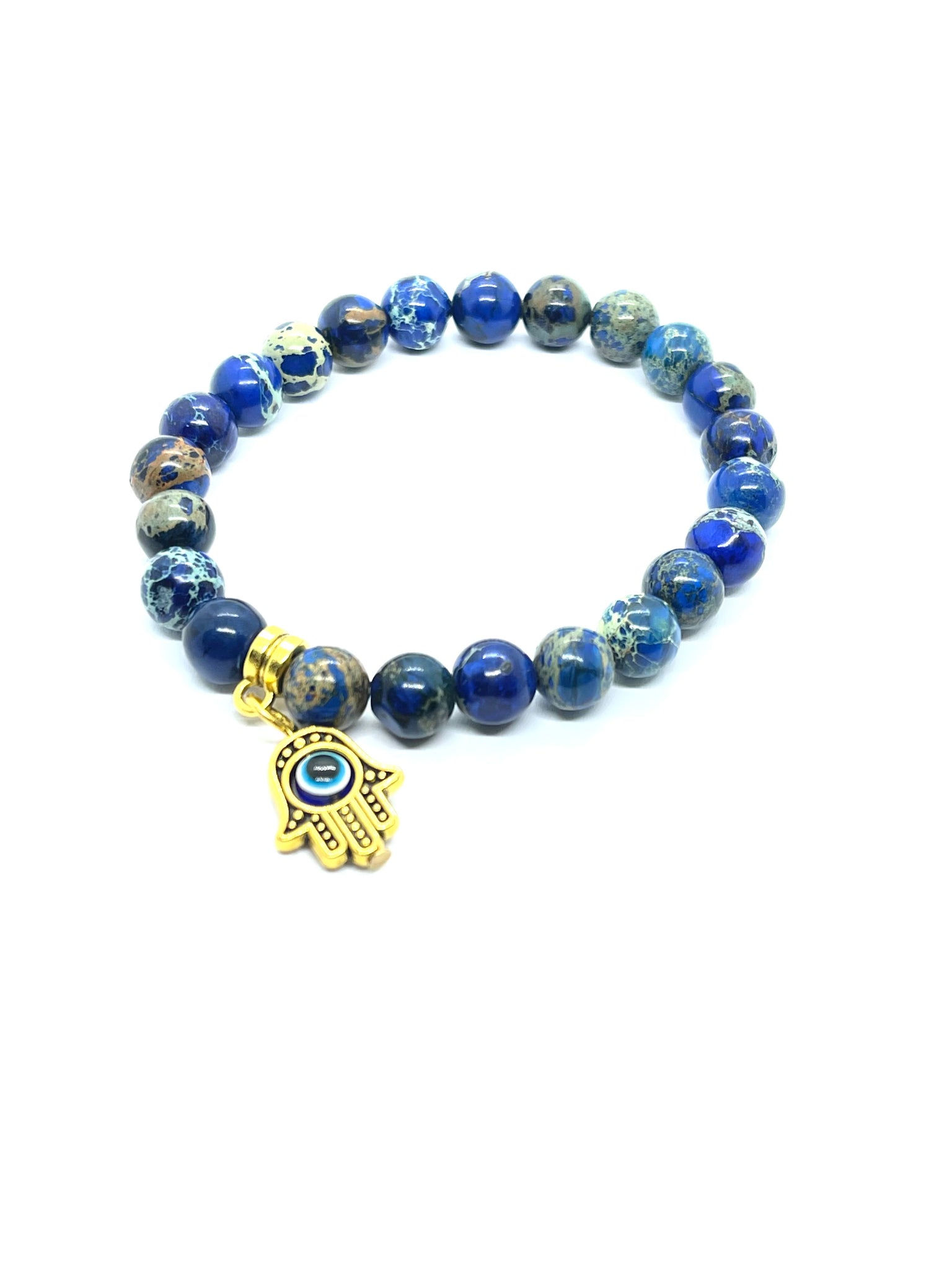 Blue sea sediment jasper promotes stability and is said to ease emotional stress.
